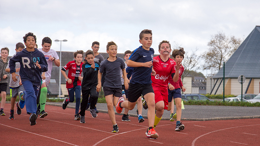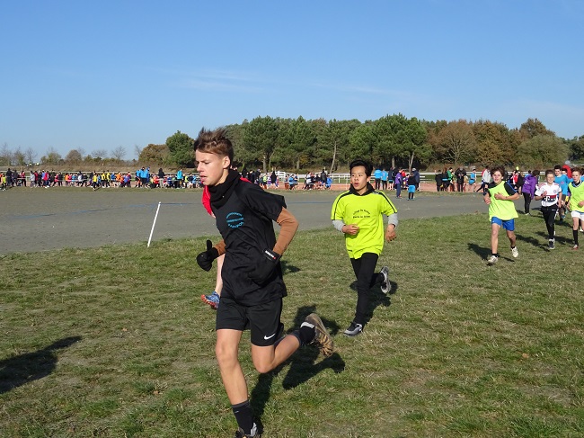 toujours aussi cadencée le départ de la course minimes garçons avec parmi eux le champion des côtes d Armor qui remporte la course |