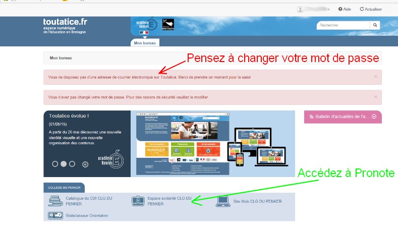 Se connecter à Pronote via Toutatice